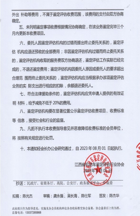 江西省机动车鉴定评估行业协会发布《鉴定评估项目收费标准指导意见》